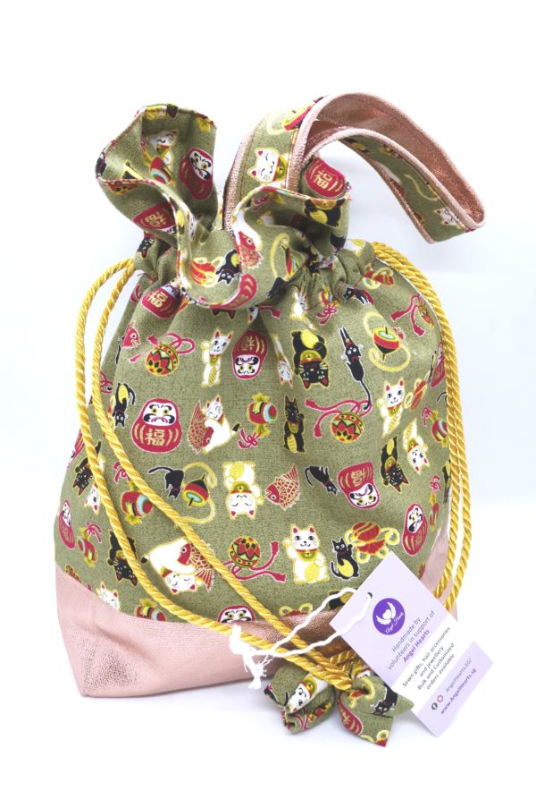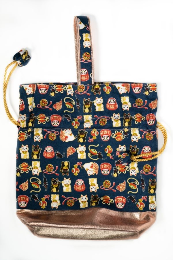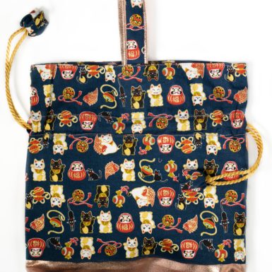 Drawstring Bag – Fortune Cat Dark Blue / Dark Green